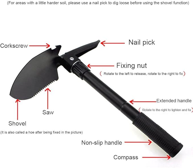 - قابلیت استفاده بهعنوان بیل، کلنگ، بیلچه و اهرم
