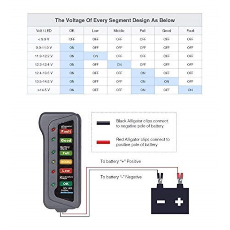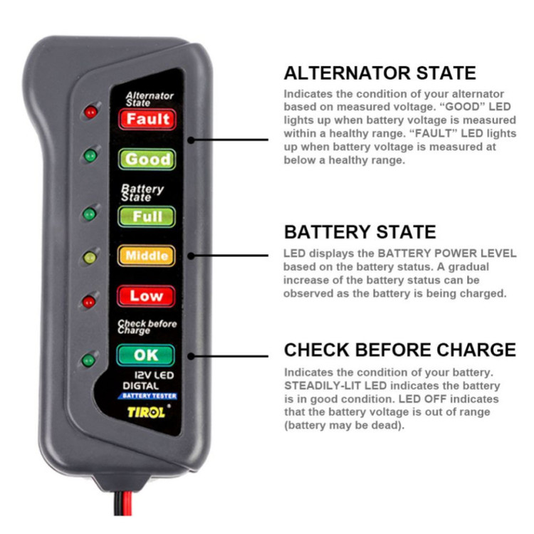 تستر باتری خودرو با پراب سوسماری 12 ولت مناسب استفاده و تست برق انواع باتری های خودرو سبک و سنگین می باشد که می توانید به راحتی و به وسیله این دستگاه برق باتری خودرو خود را بسنجید و از صحت کارکرد آن مطمئن شوید.