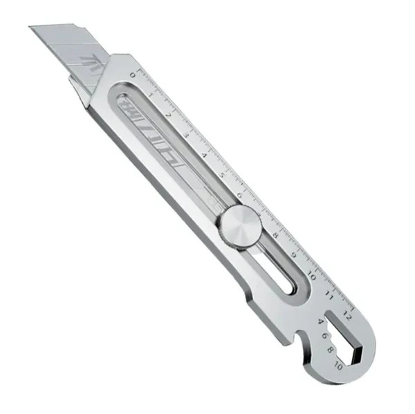 موکت بر( کاتر) آلومینومی چهار کاره یوکن مدل U6216 با کارایی همه کاره و دارای خط کش و پیچ گوشتی و سر باز کن و آچار رینگی 4 تا 10 روی دسته تیغ