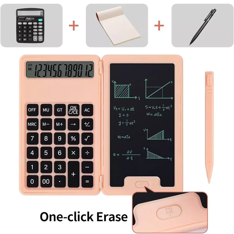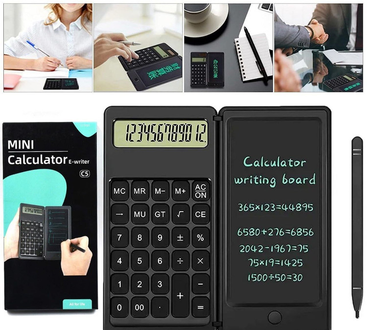 مینی ماشین حساب یادداشت دار مجهز به صفحه یادداشت هوشمند دارای قلم نگارش مغناطیسی صفحه نمایش 5 اینچی دارای تاشو قابلیت حذف یاداشت ها تنها با یک کلید کاهش مصرف کاغذ و حفاظت از محیط زیست