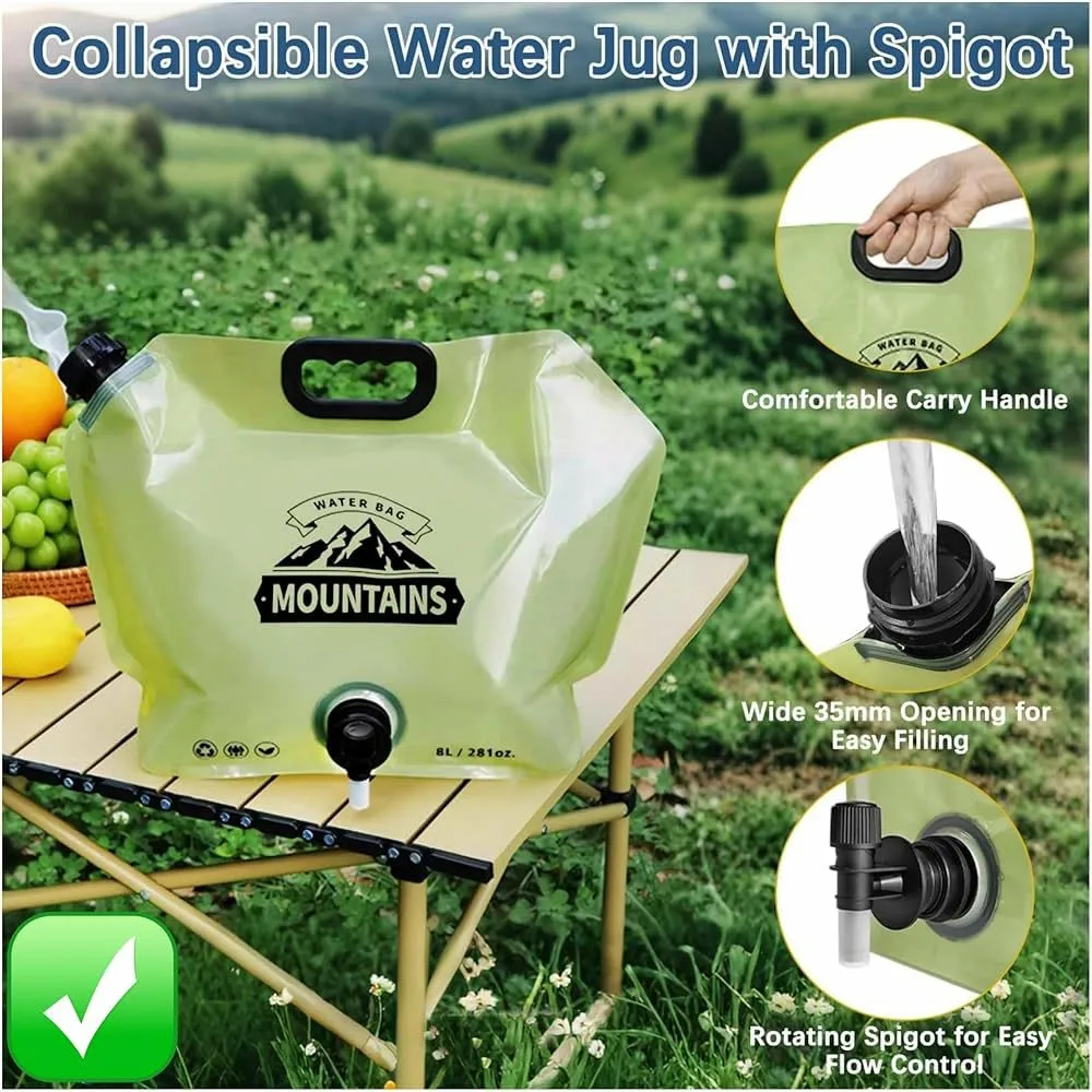 گالن آب شیردار 8 لیتری تاشو مناسب برای کمپینگ، پیکنیک، کوهنوردی، سفر، استفاده خانگی در مواقع ضروری