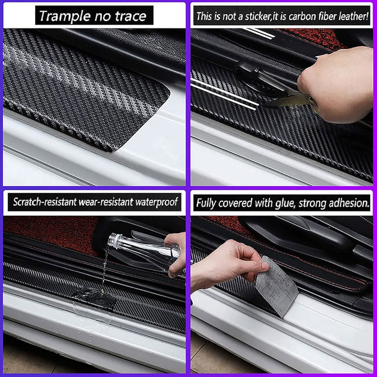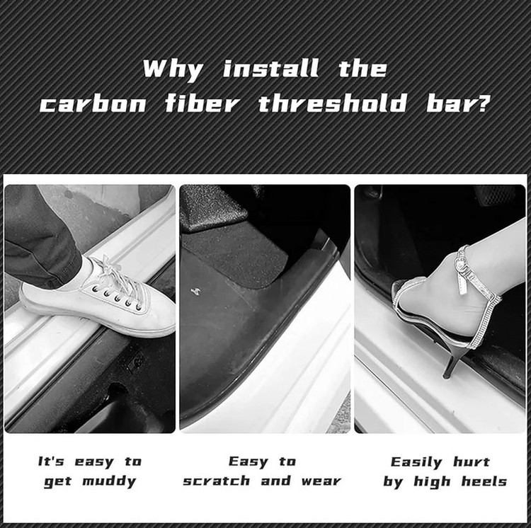 پا رکابیهای طرح کربن به دلیل سطح صاف و مقاوم خود، باعث تمیزی راحتتر و بدلیل ضد آب بودن آن قابل شستشو هستند. همچنین، از خط و خش به وسیله کفش نیز محافظت میکنند. این ویژگیها باعث میشود پا رکابیها یک انتخاب عالی برای خودروها باشند.