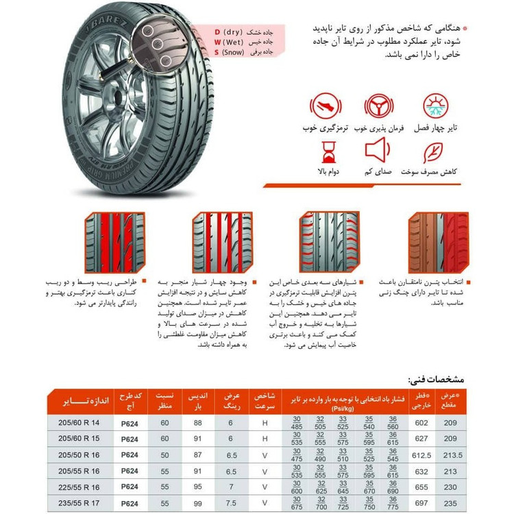 لاستیک بارز 205/55/16 گل p624 تولید 2023